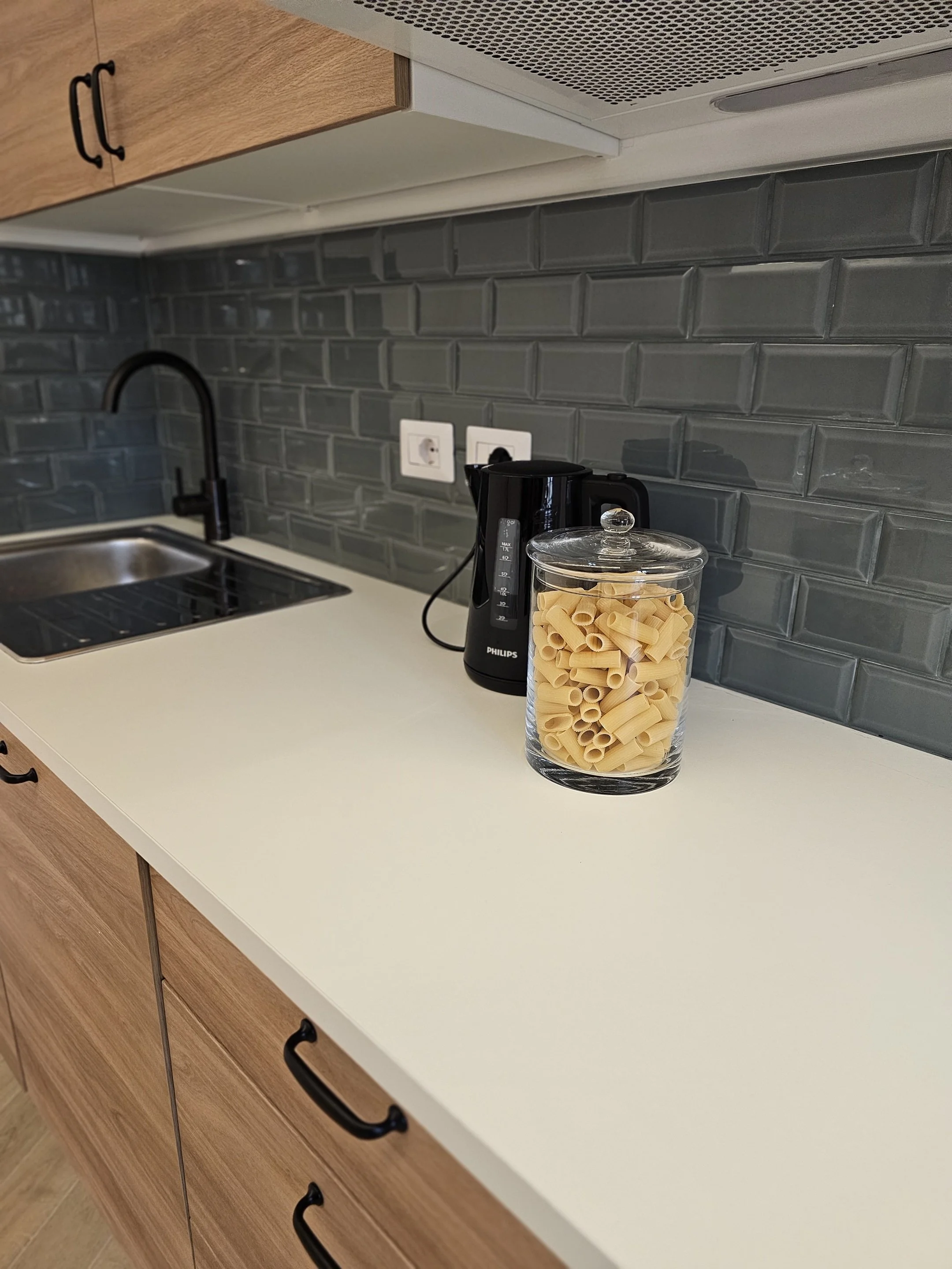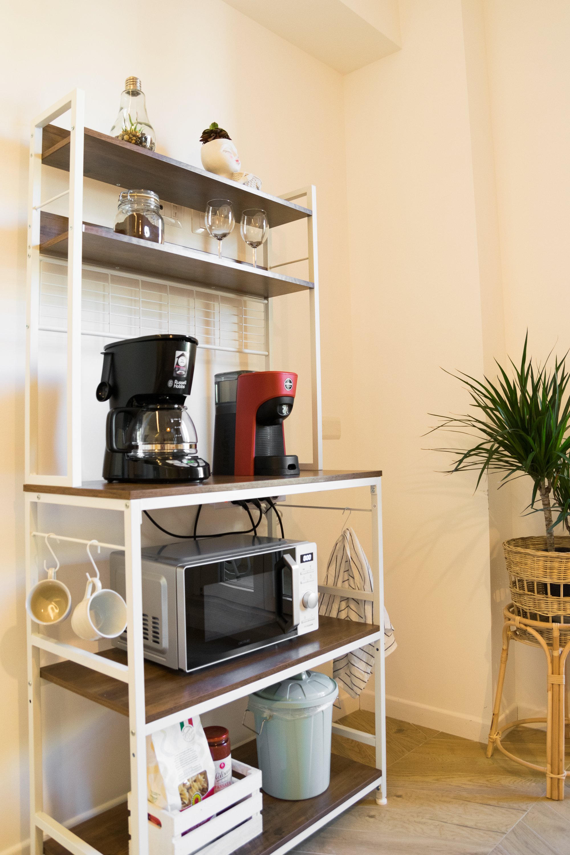 Cucina completamente attrezzata per preparare pasti semplici.